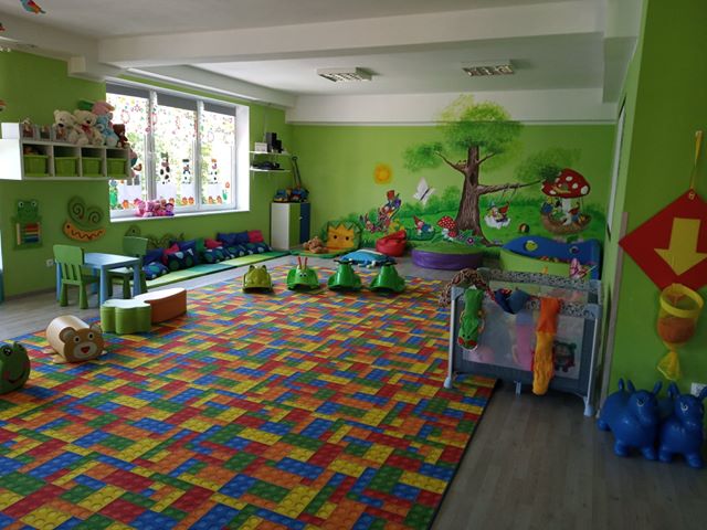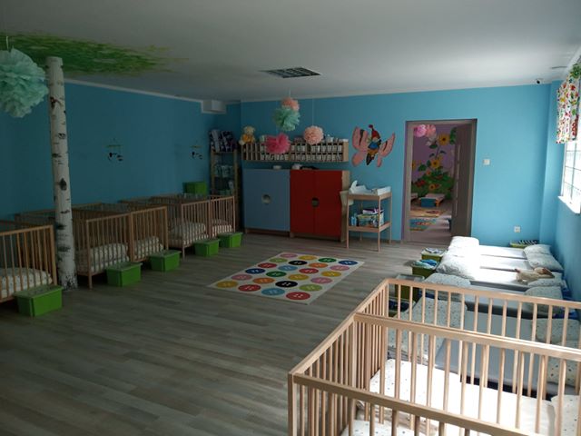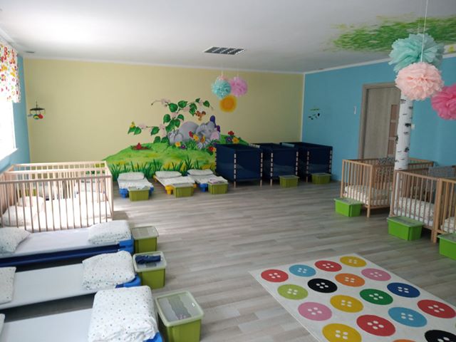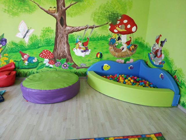 Jak widać na załączonych zdjęciach, będąc w tzw. sypialni odnosimy wrażenie, że jesteśmy w krainie snu. Aranżacja tego pomieszczenia na styl zielonej łąki sprawia, że nasze Skrzatki wpadają w melancholię zbliżającą ich do krainy snów, w której nie tylko zregenerują swoje siły, ale także obudzą się pełne zapału i chęci do życia w Skrzatkowej Chatce.
